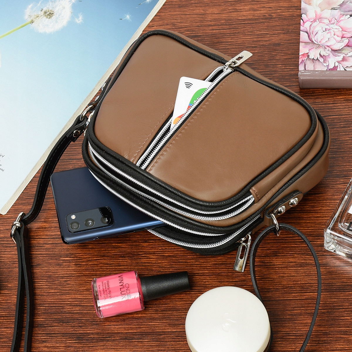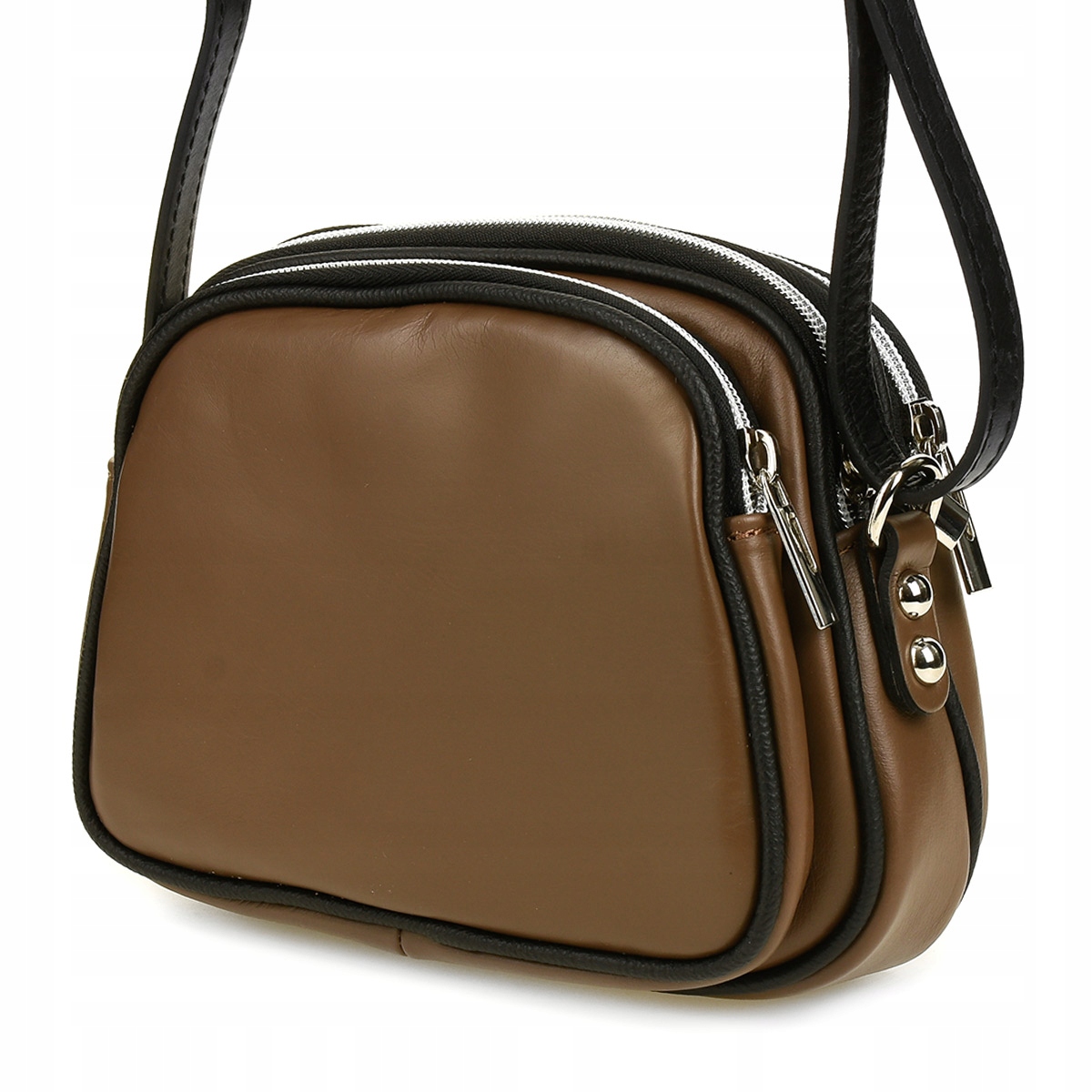 Trzykomorowa listonoszka damska skórzana pojemna