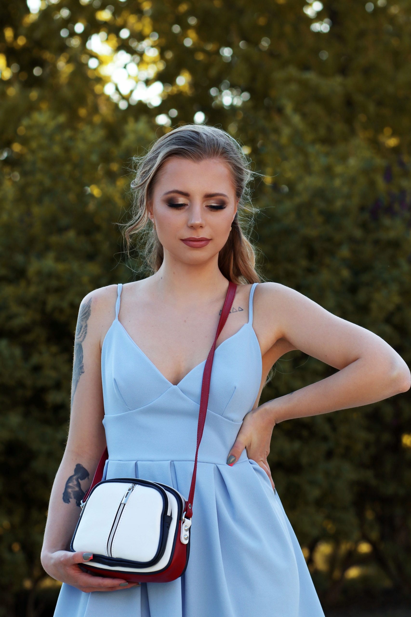 Torebka ma długi, regulowany pasek o maksymalnej długości do 140 cm. Wykończenia są wysokiej jakości w srebrnym kolorze.