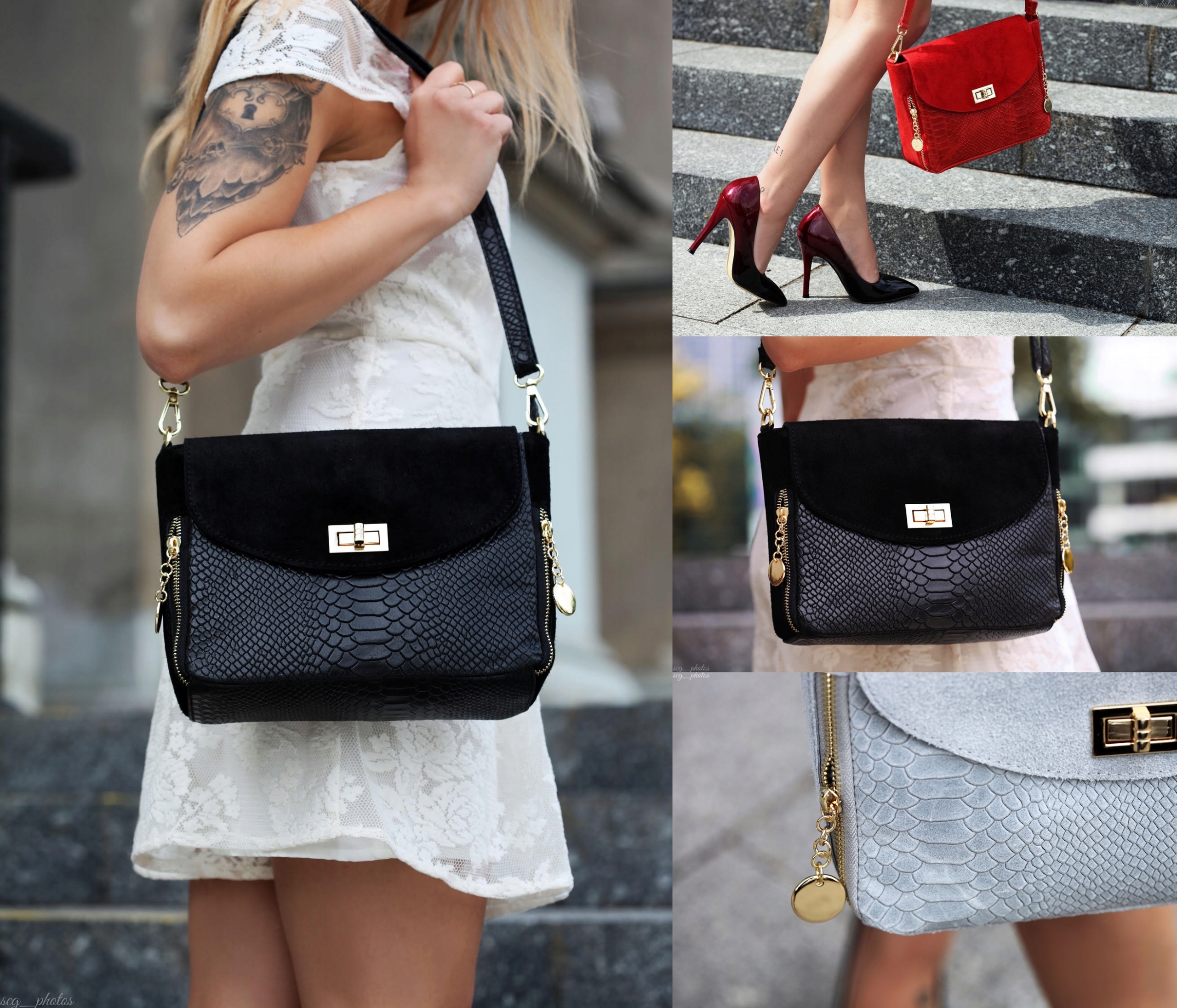 Włoska Torebka Skórzana listonoszka skóra węża T96