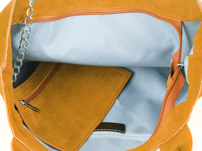 Włoska Torebka Skórzana Zamszowa A4 na suwak duża