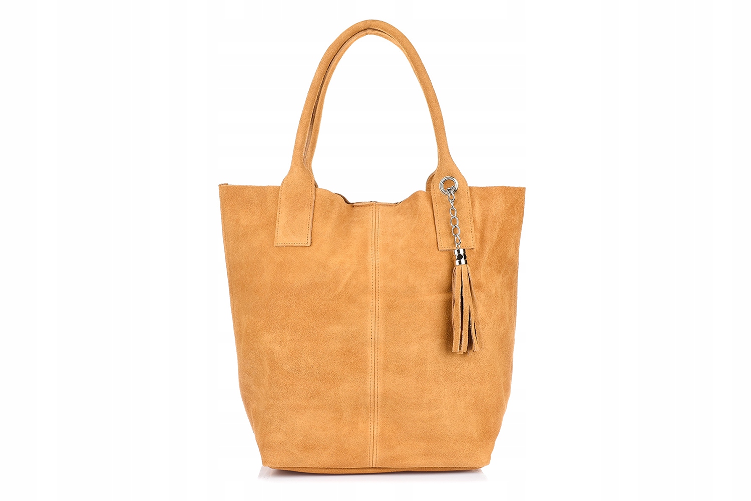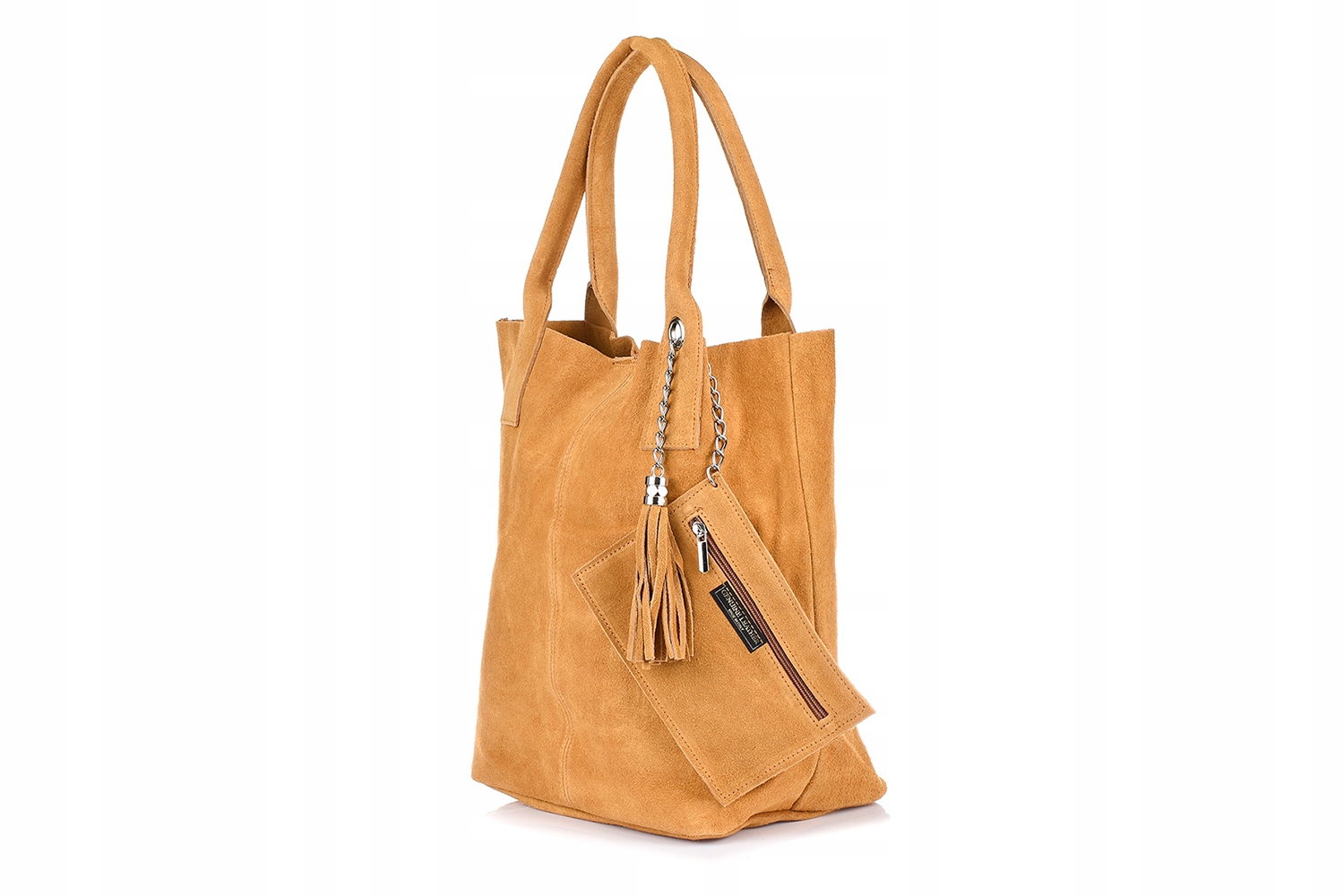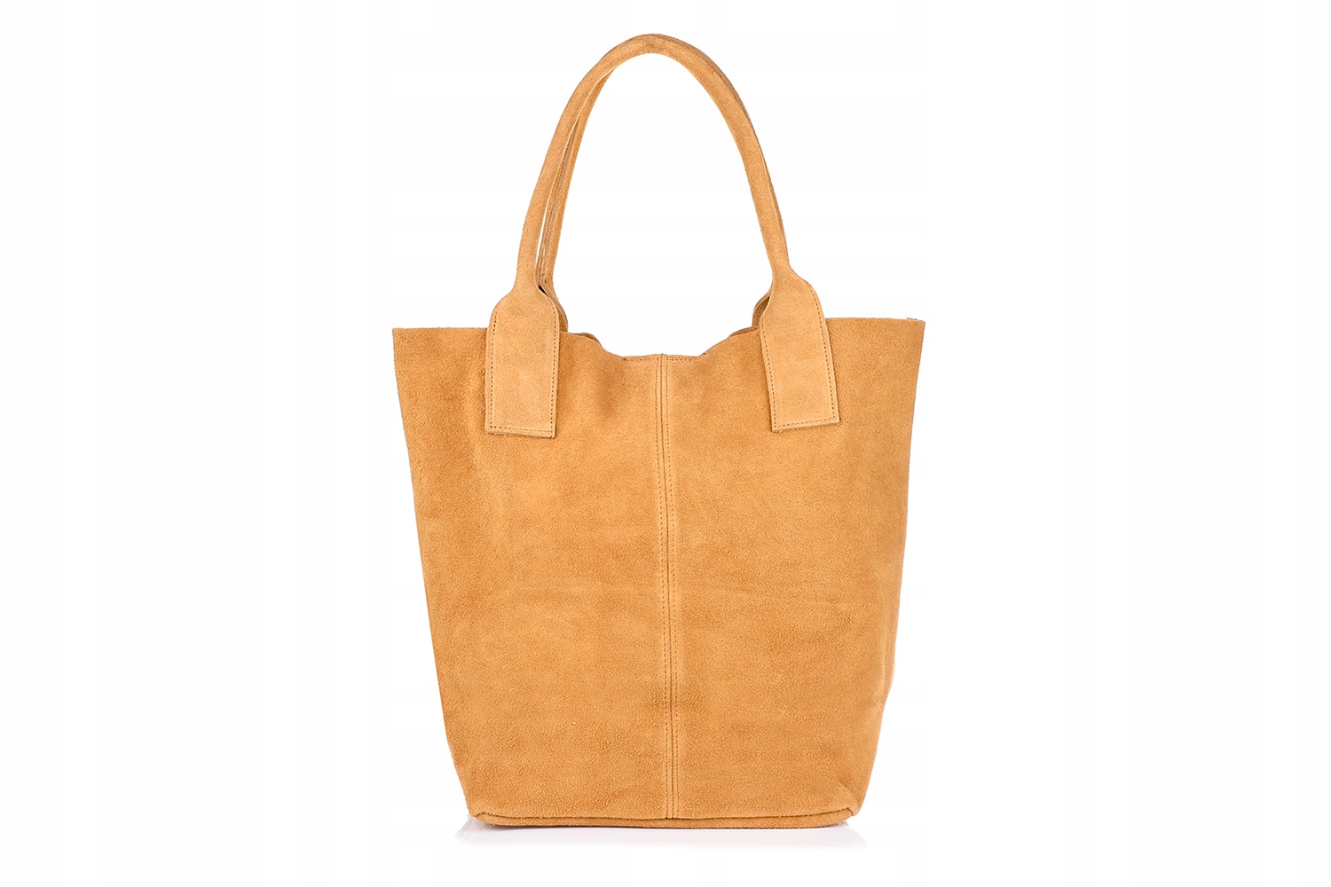 Rewelacyjna, skórzana, zamszowa, damska torebka na ramię, shopper bag, wykonana we Włoszech, z włoskiej skóry naturalnej w kamelowym kolorze.