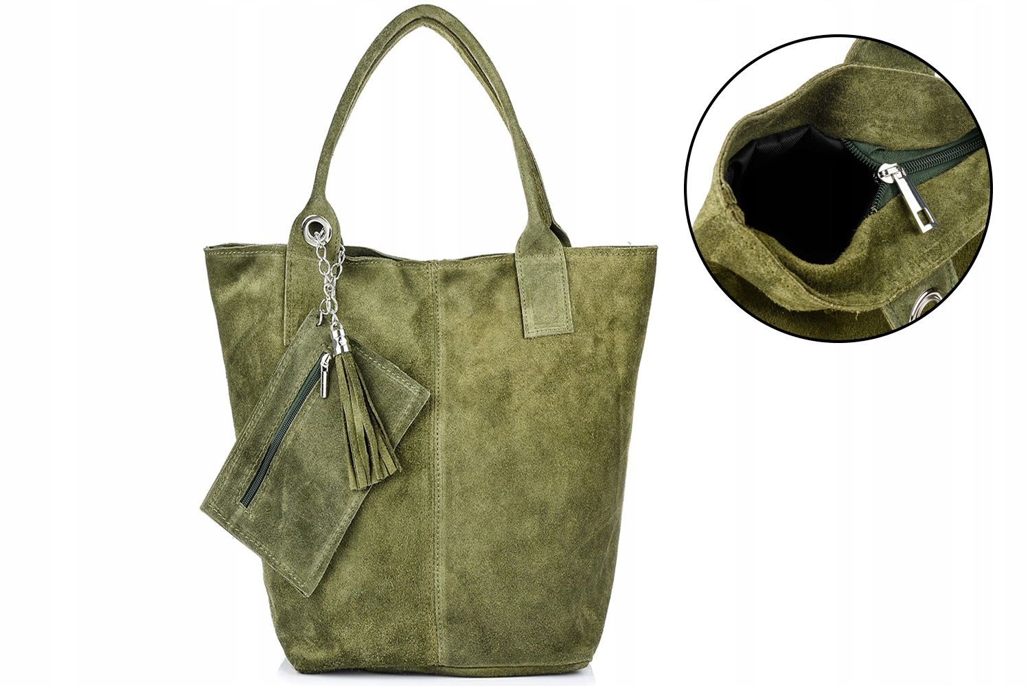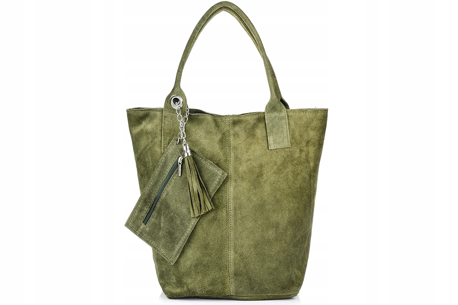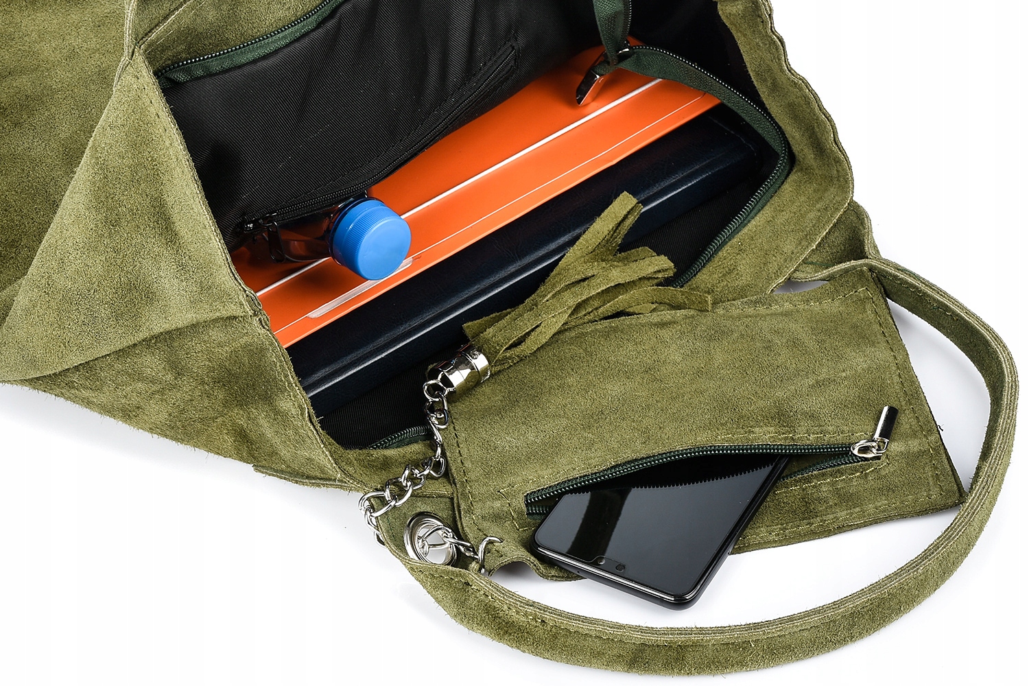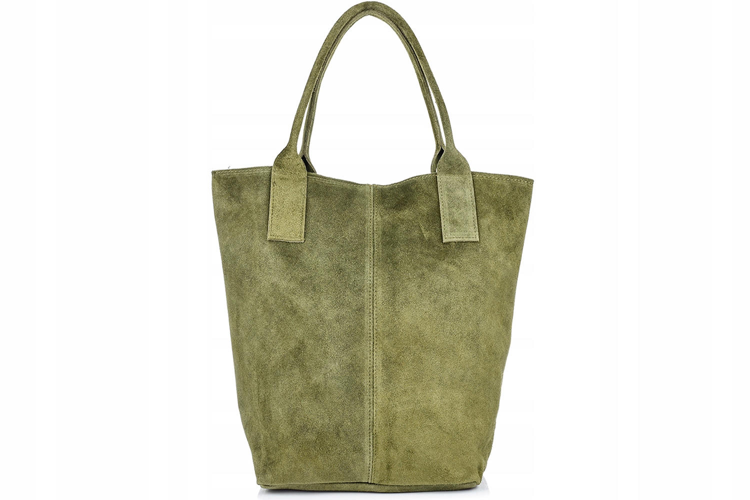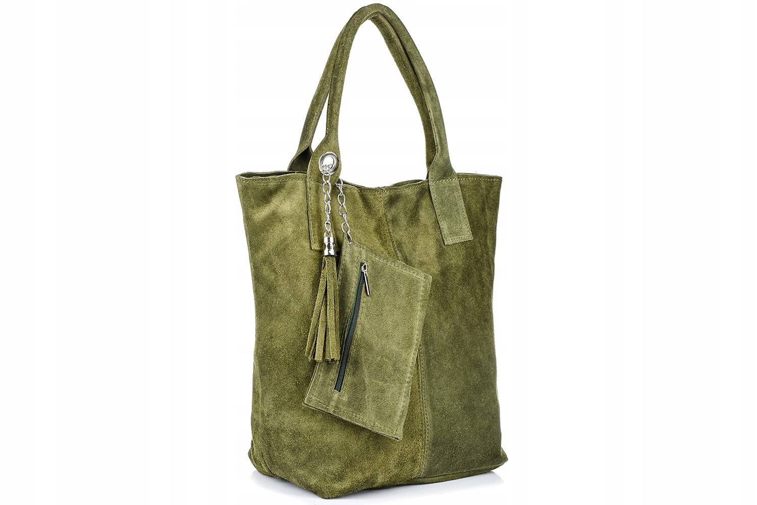 Rewelacyjna, skórzana, zamszowa, damska torebka na ramię, shopper bag, wykonana we Włoszech, z włoskiej skóry naturalnej
