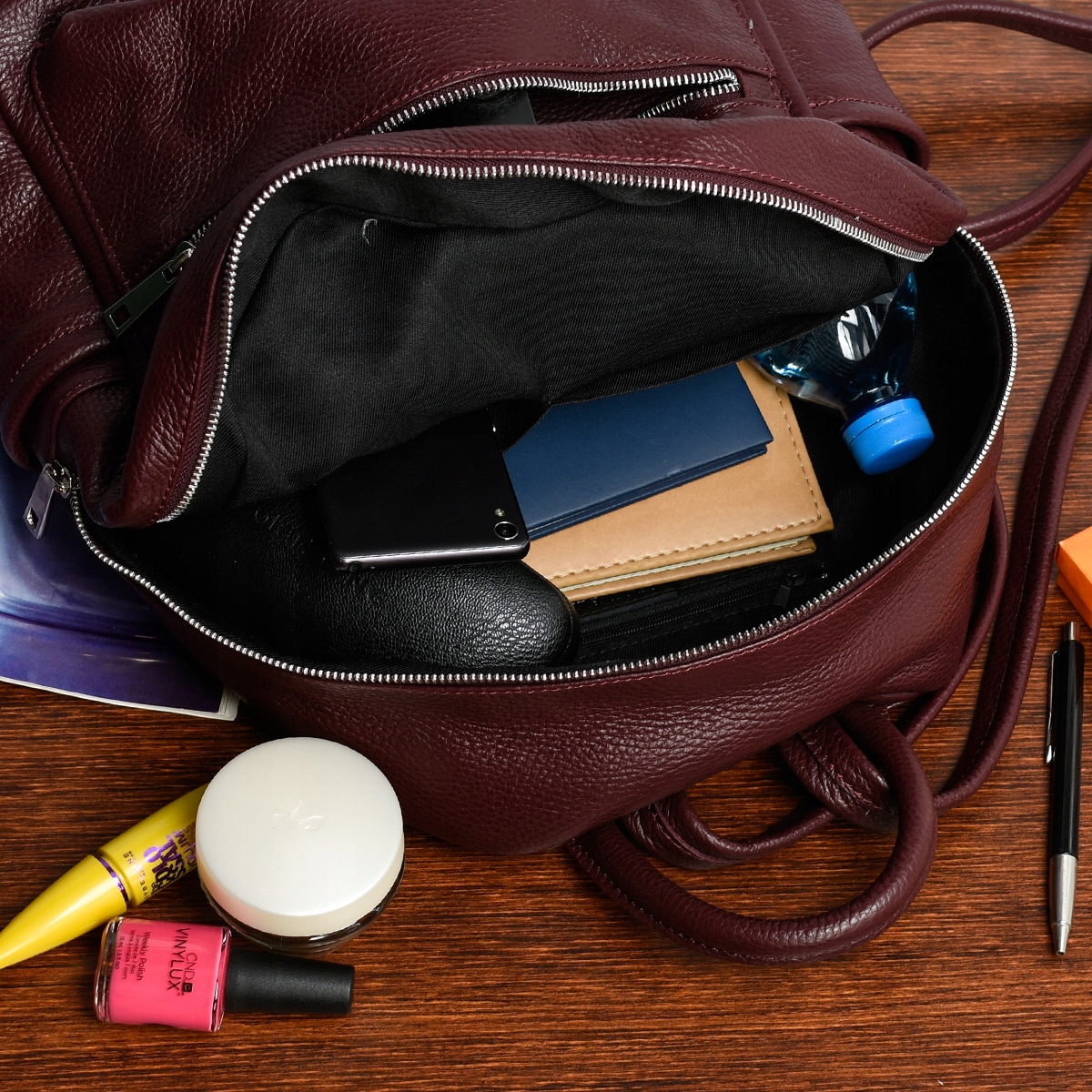 Rewelacyjny, solidny, skórzany, damski plecak w burgundowym kolorze, wyprodukowany we Włoszech, z włoskiej skóry naturalnej