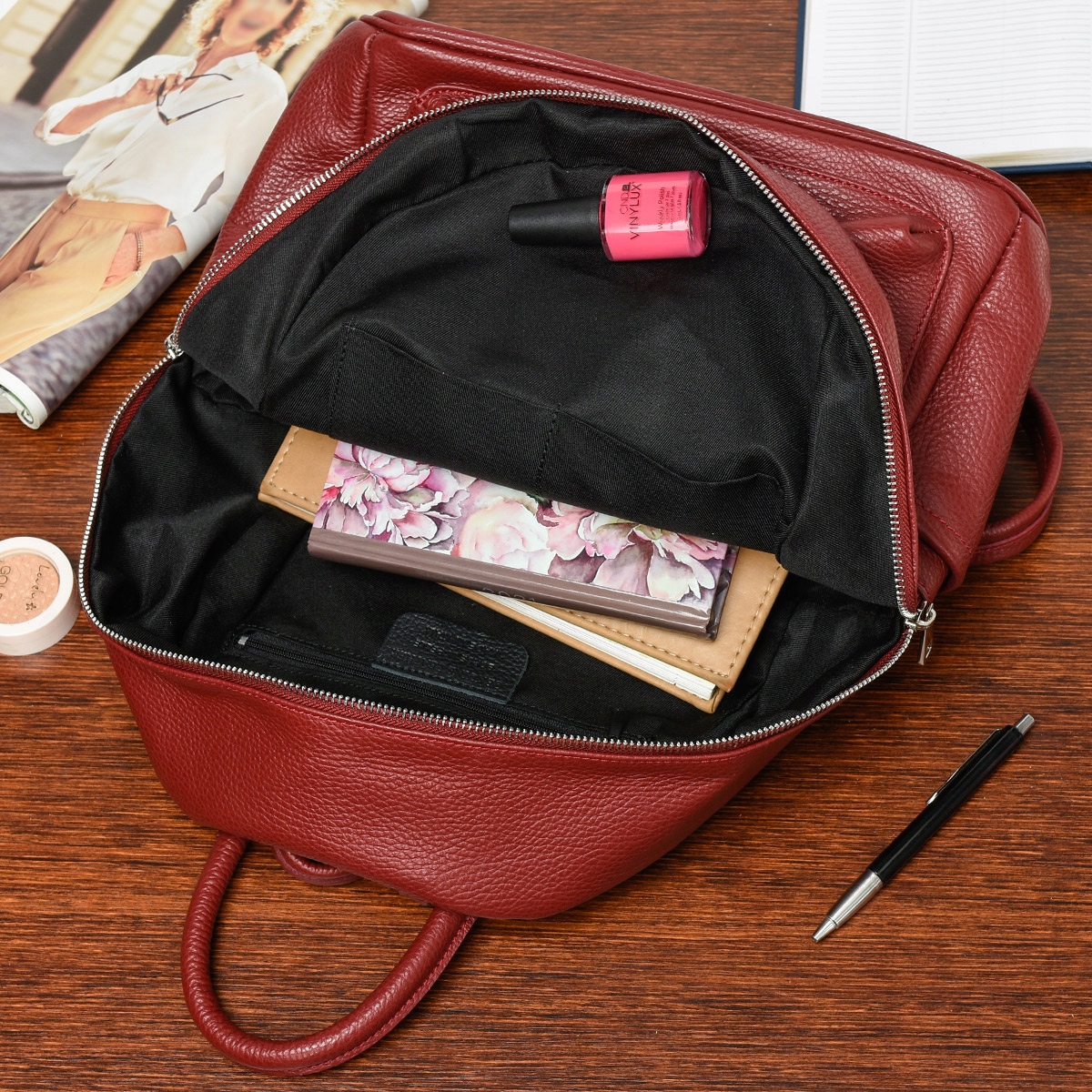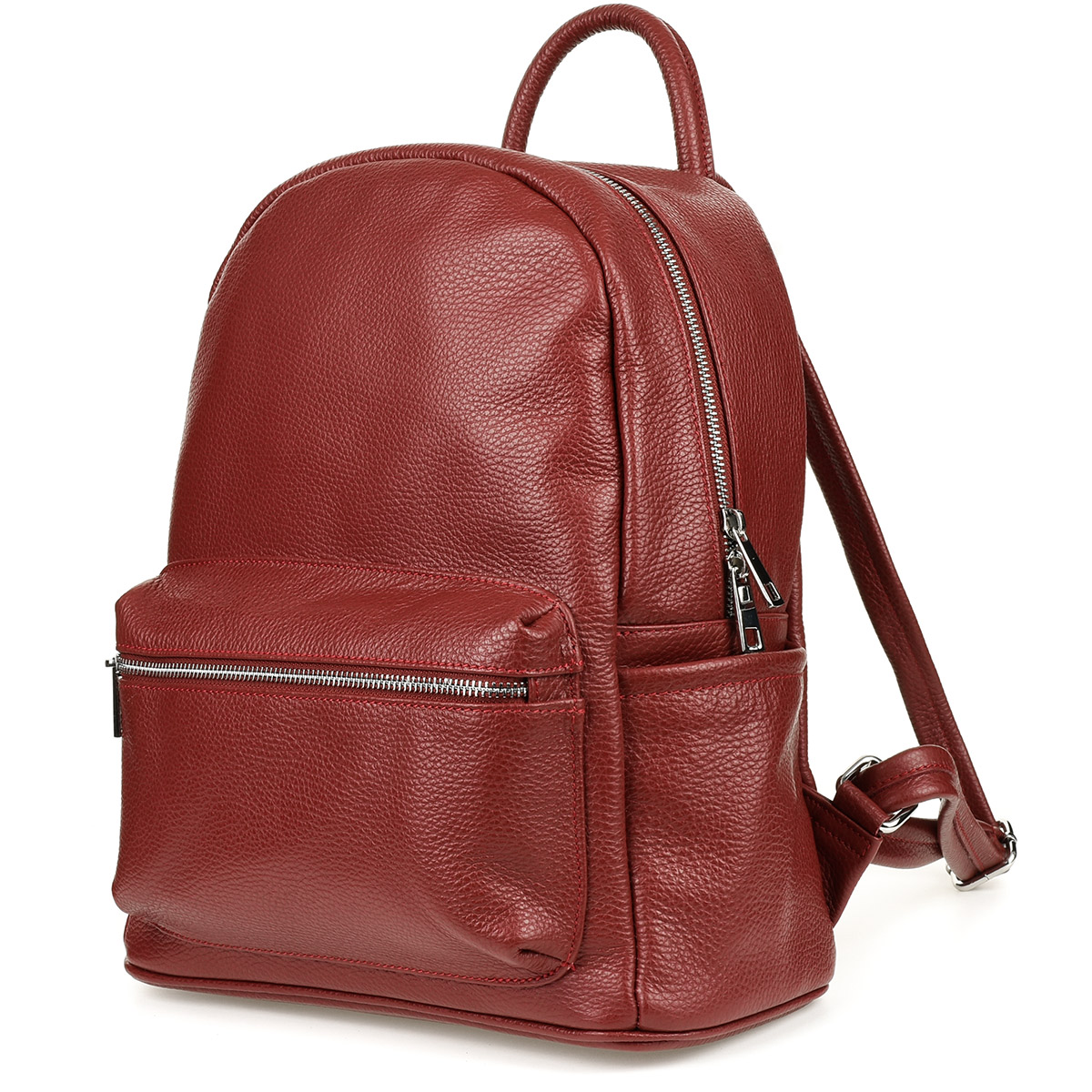 Stylowy, damski, skórzany plecaczek w bordowym kolorze, wykonany we Włoszech, z wysokogatunkowej, miękkiej, włoskiej skóry naturalnej