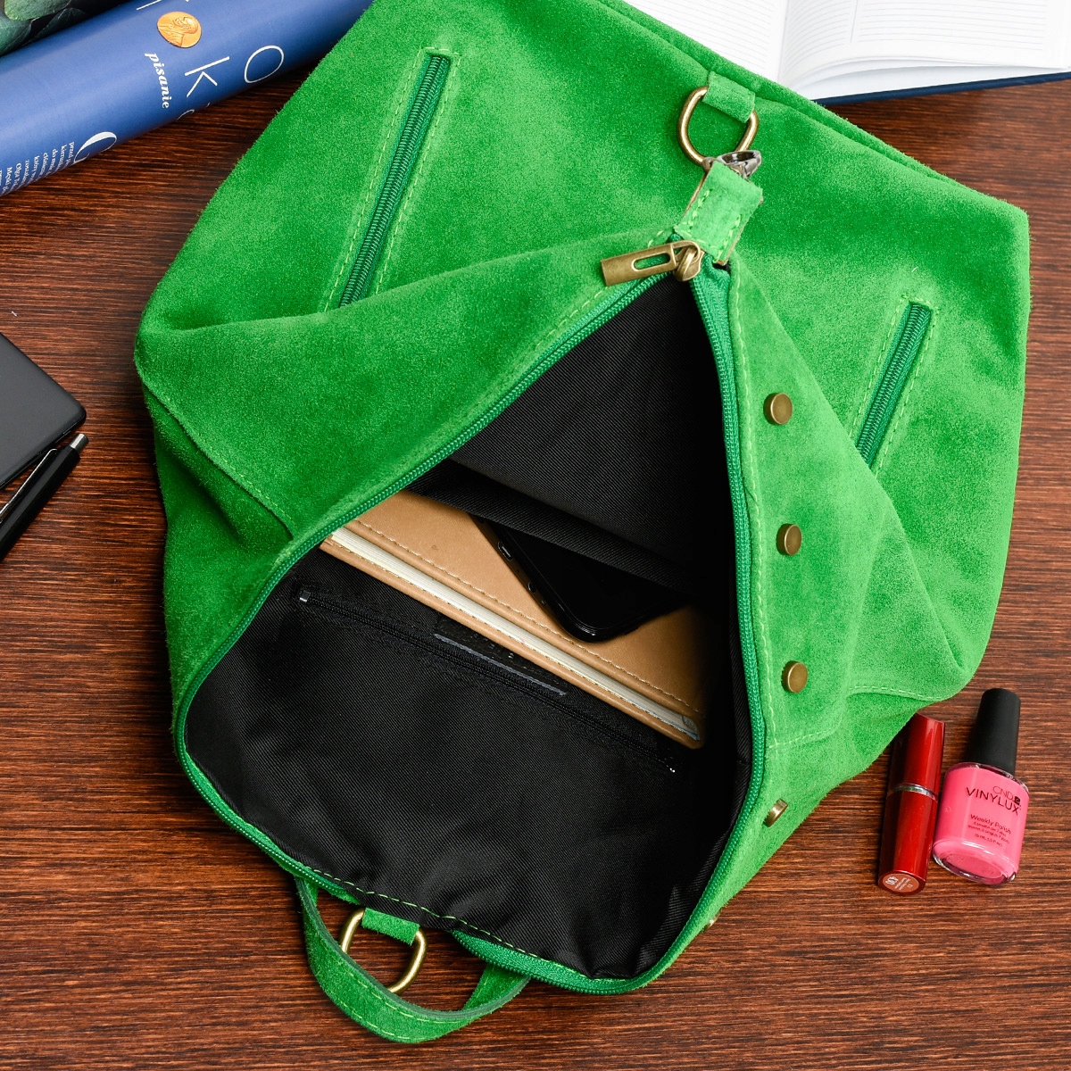 Włoski Stylowy Plecak Damski Skórzany Zamsz A4 W14