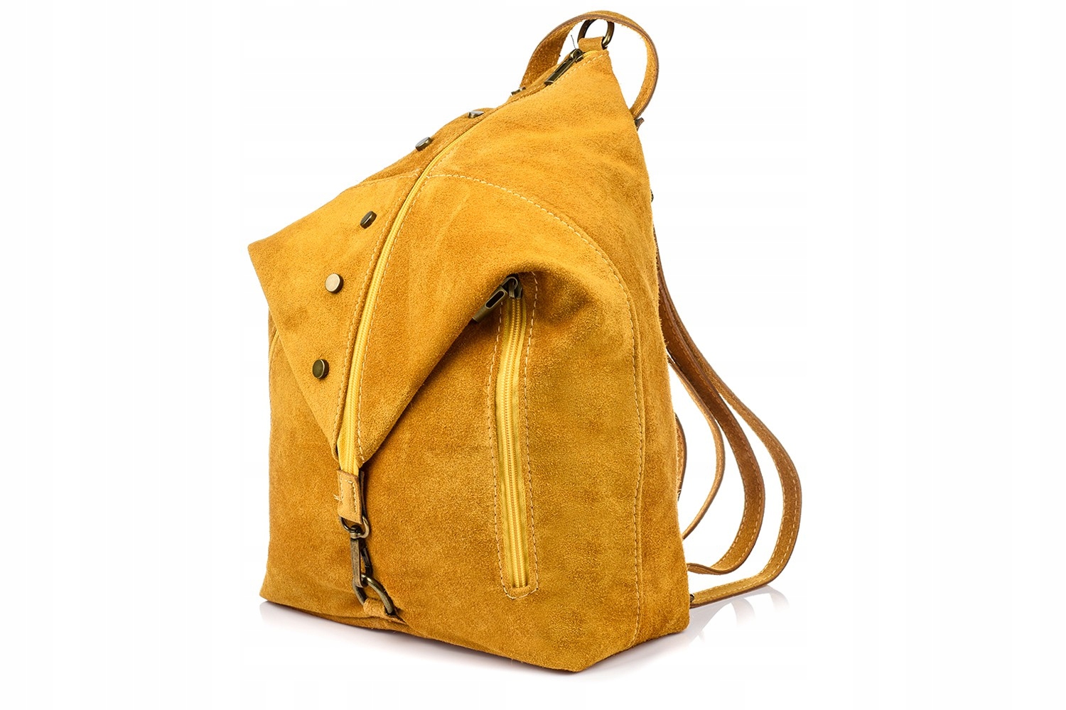 Włoski Stylowy Plecak Damski Skórzany Zamszowy A4
