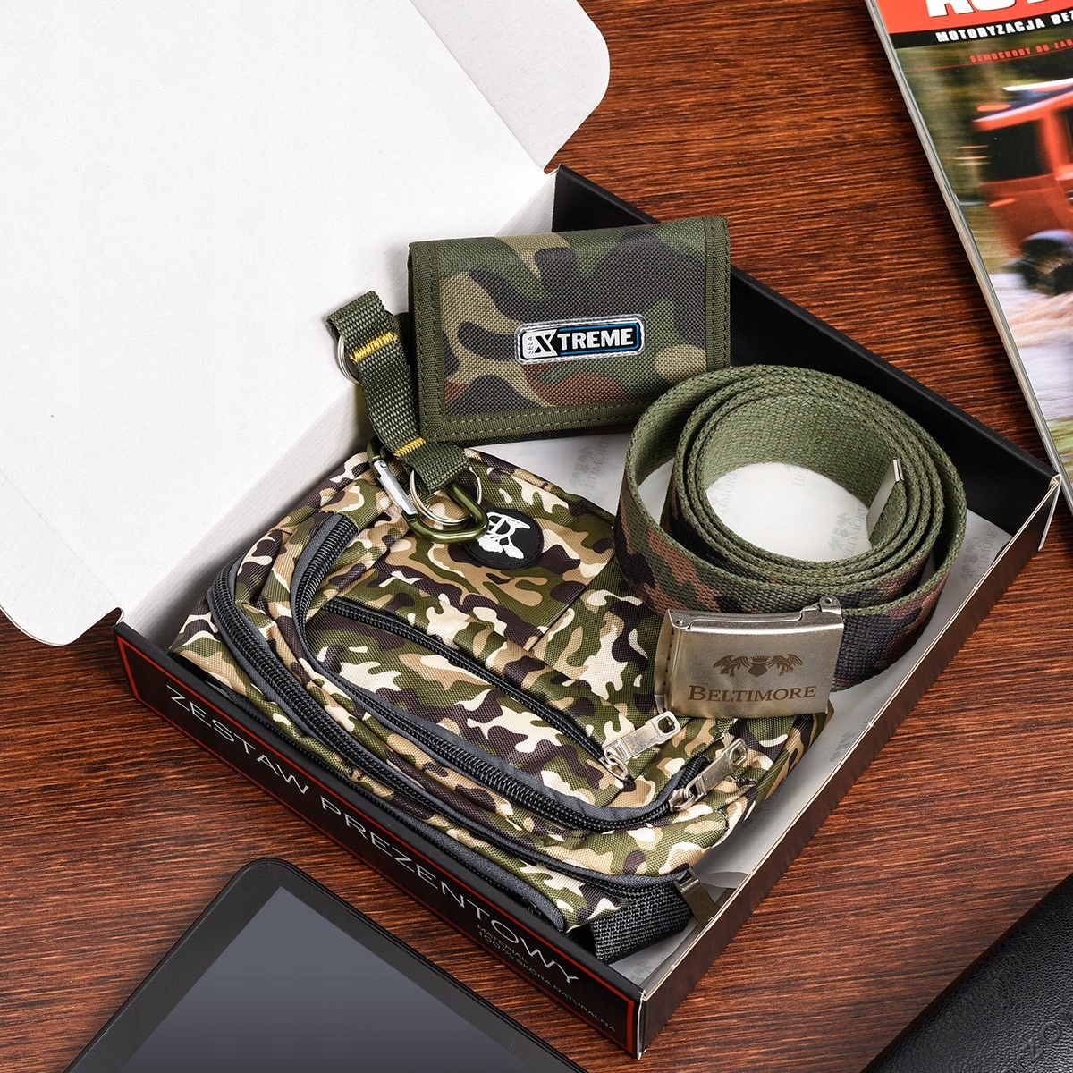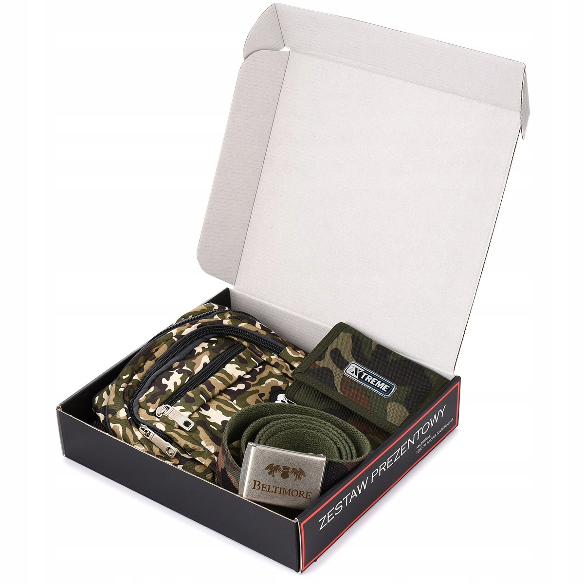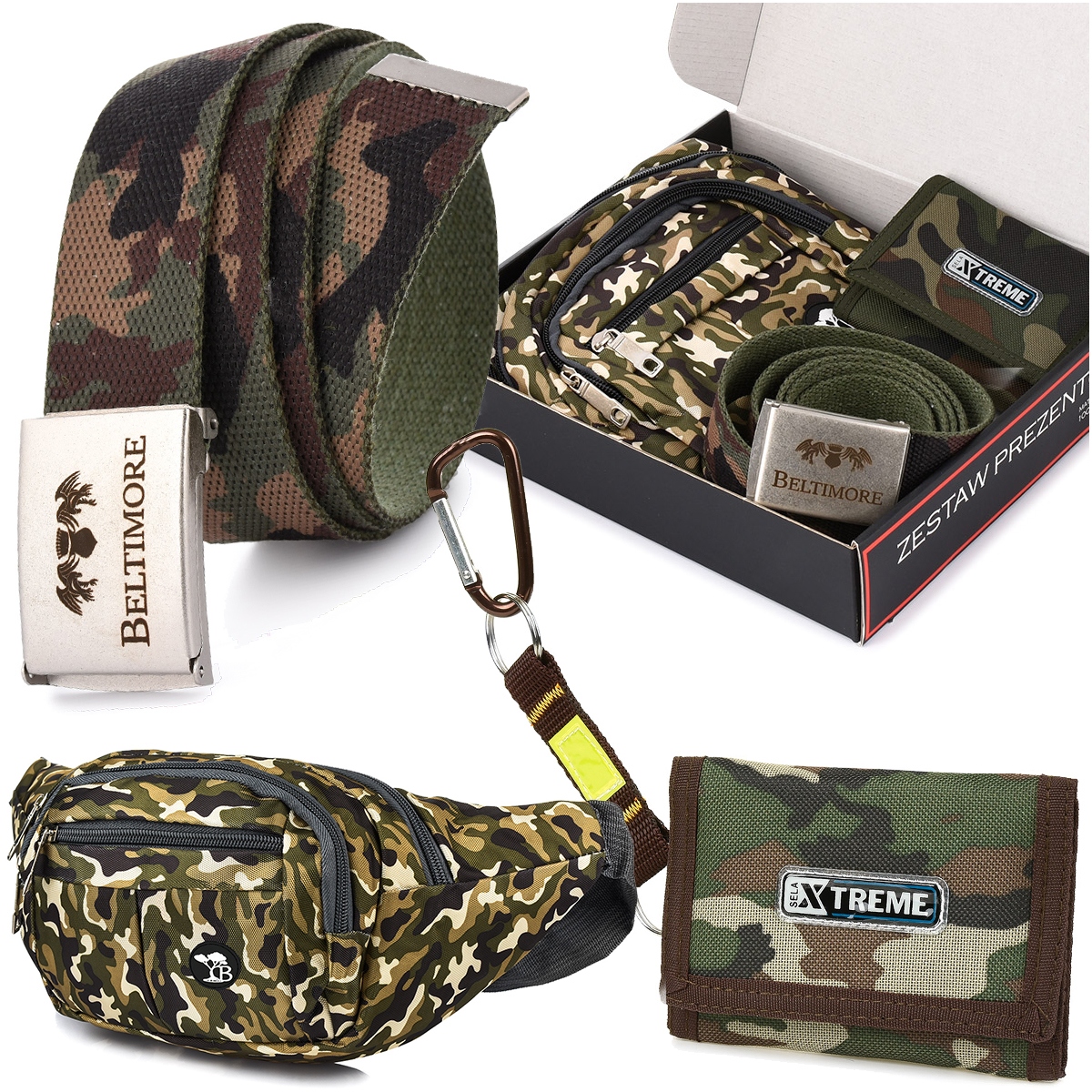 Zestaw męski portfel pasek saszetka moro Beltimore