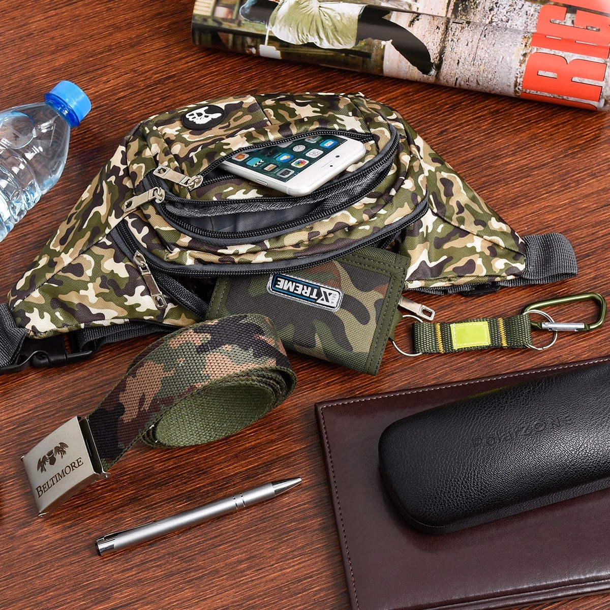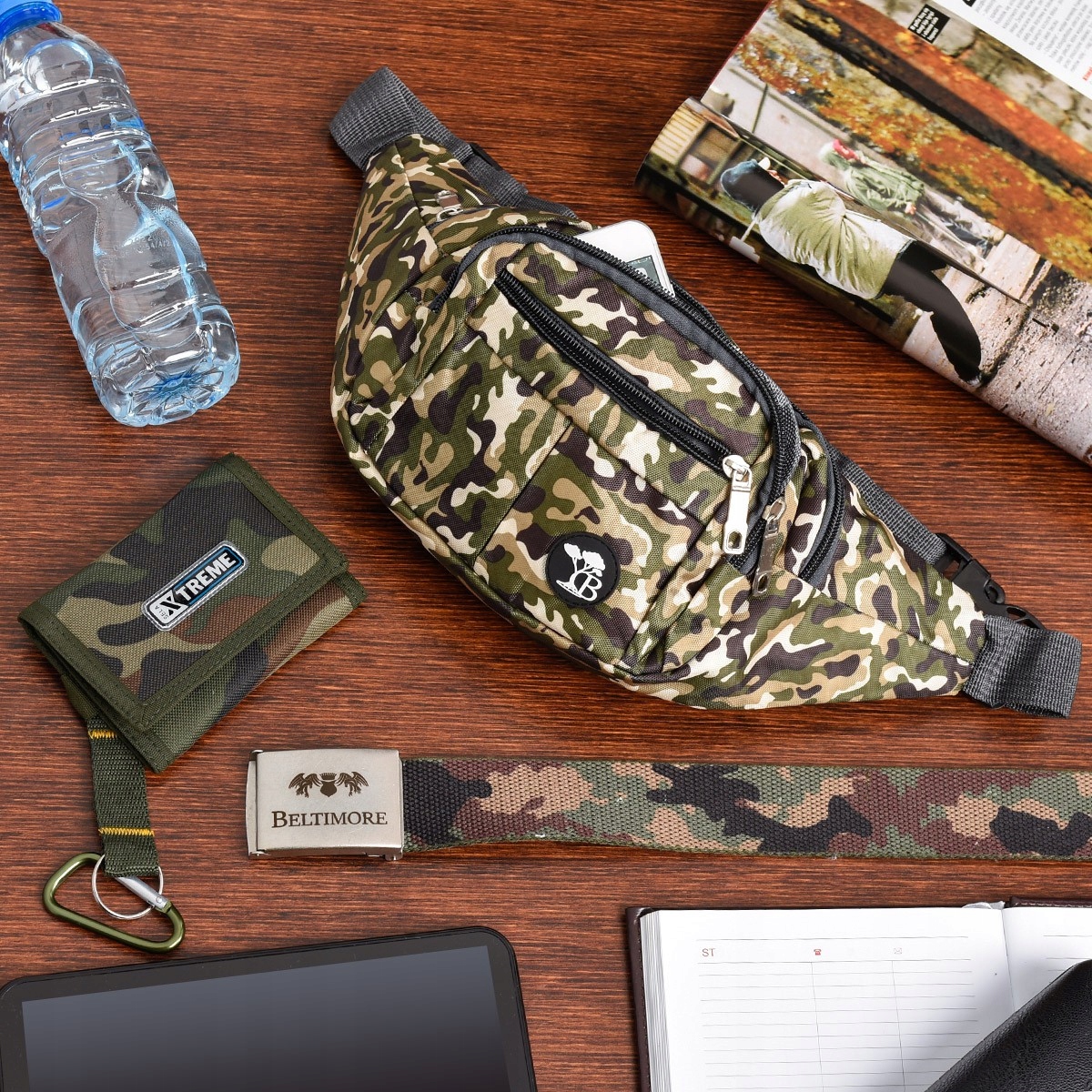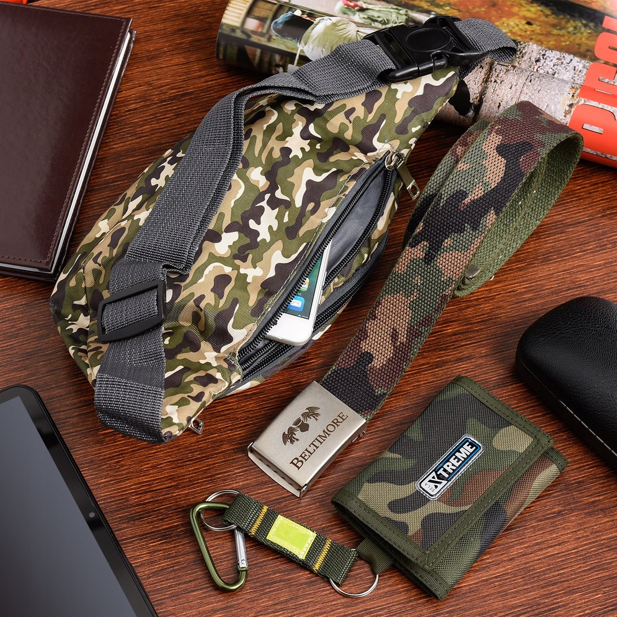 Zestaw męski portfel pasek saszetka moro Beltimore