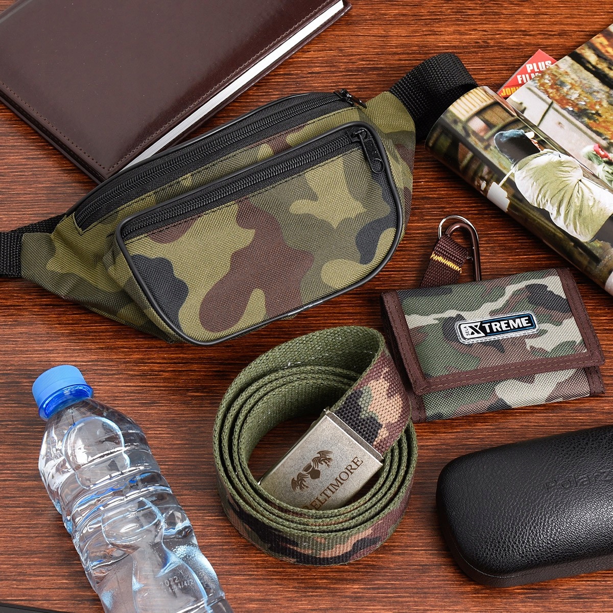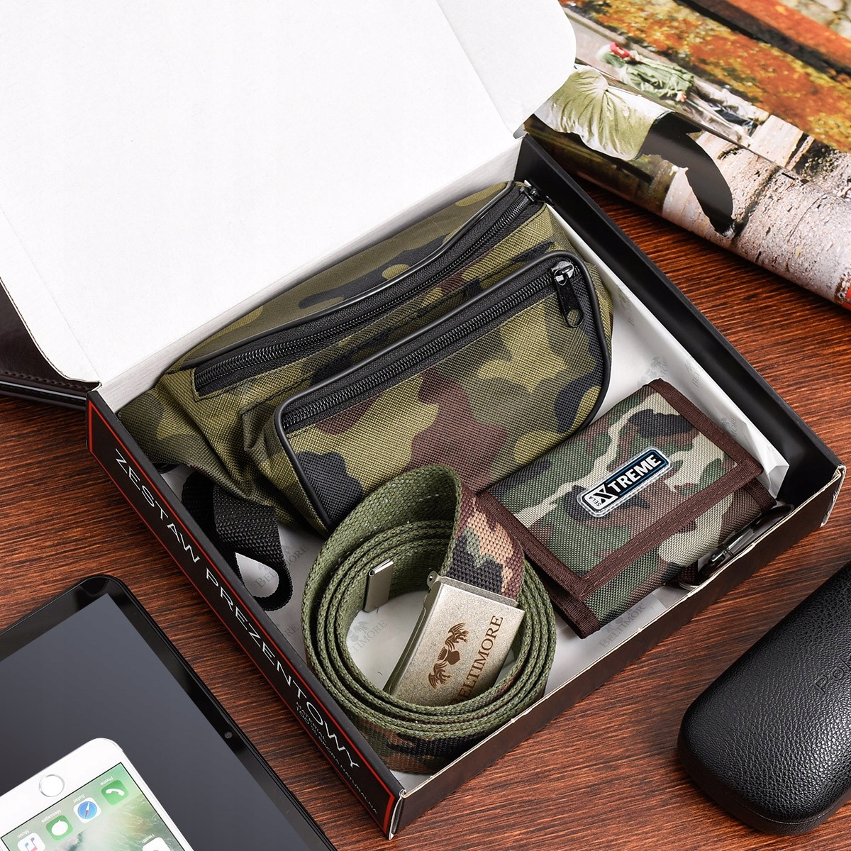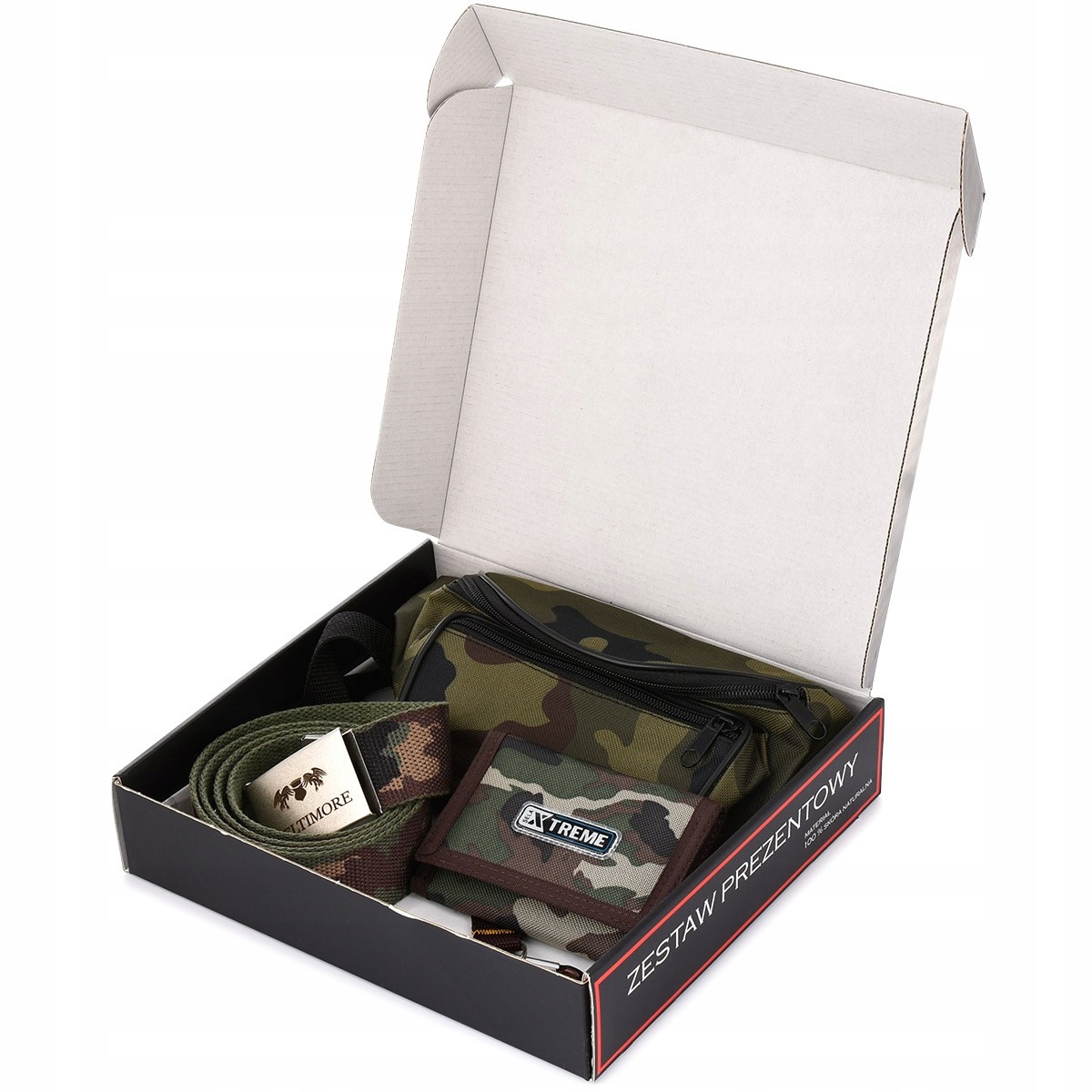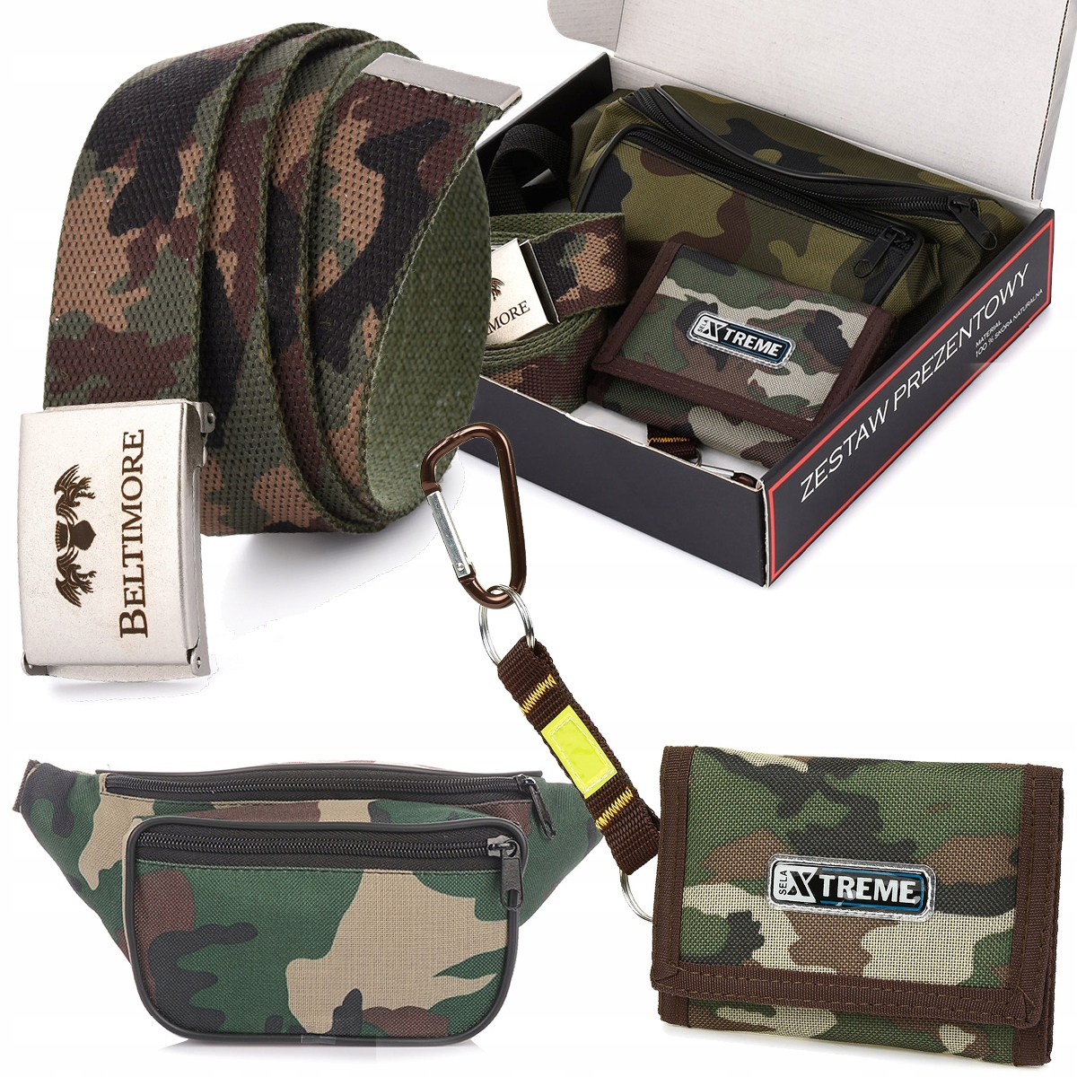 Zestaw męski portfel pasek saszetka moro Beltimore