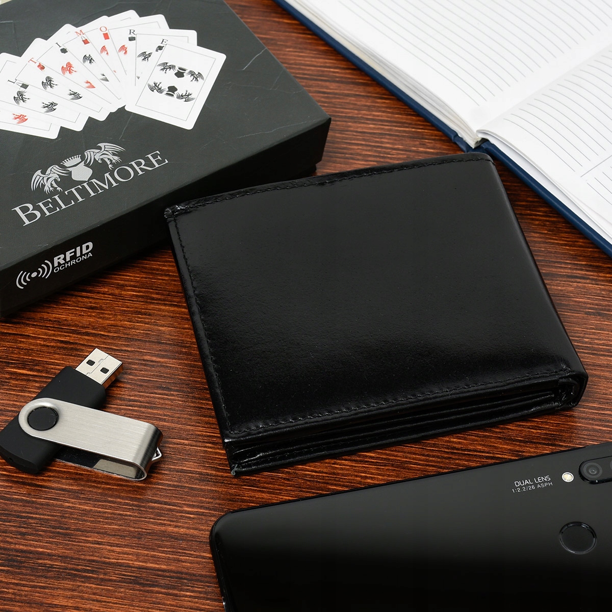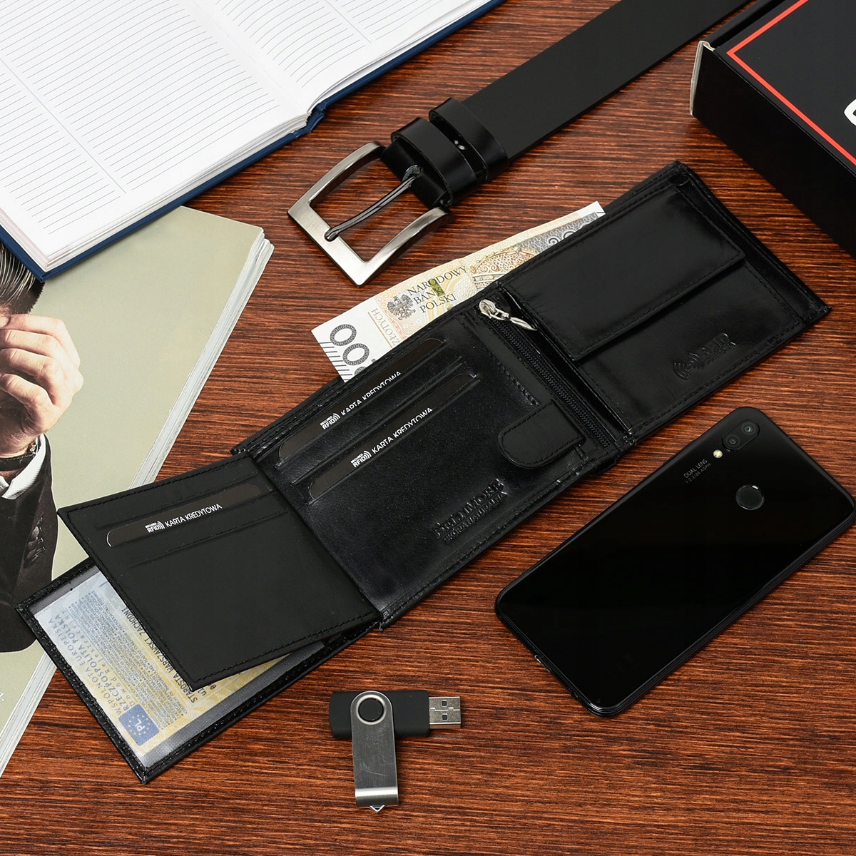 Zestaw męski skórzany portfel pasek duży Beltimore