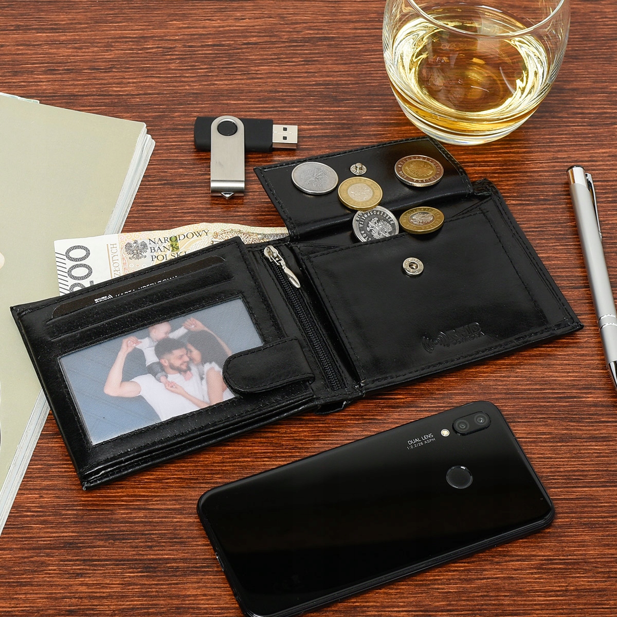 ☑️ 2 duże przegrody na banknoty