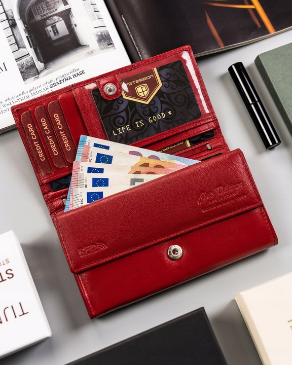 Galanteria marki Peterson® cieszy się ogromną popularnością. Każdy produkt projektowany jest zgodnie z aktualnie obowiązującymi trendami, nawiązując do oryginalnej i ponadczasowej stylistyki. Bogactwo kolorów i wzorów, jak również wysoka jakość wykonania to cechy, które charakteryzują markę.