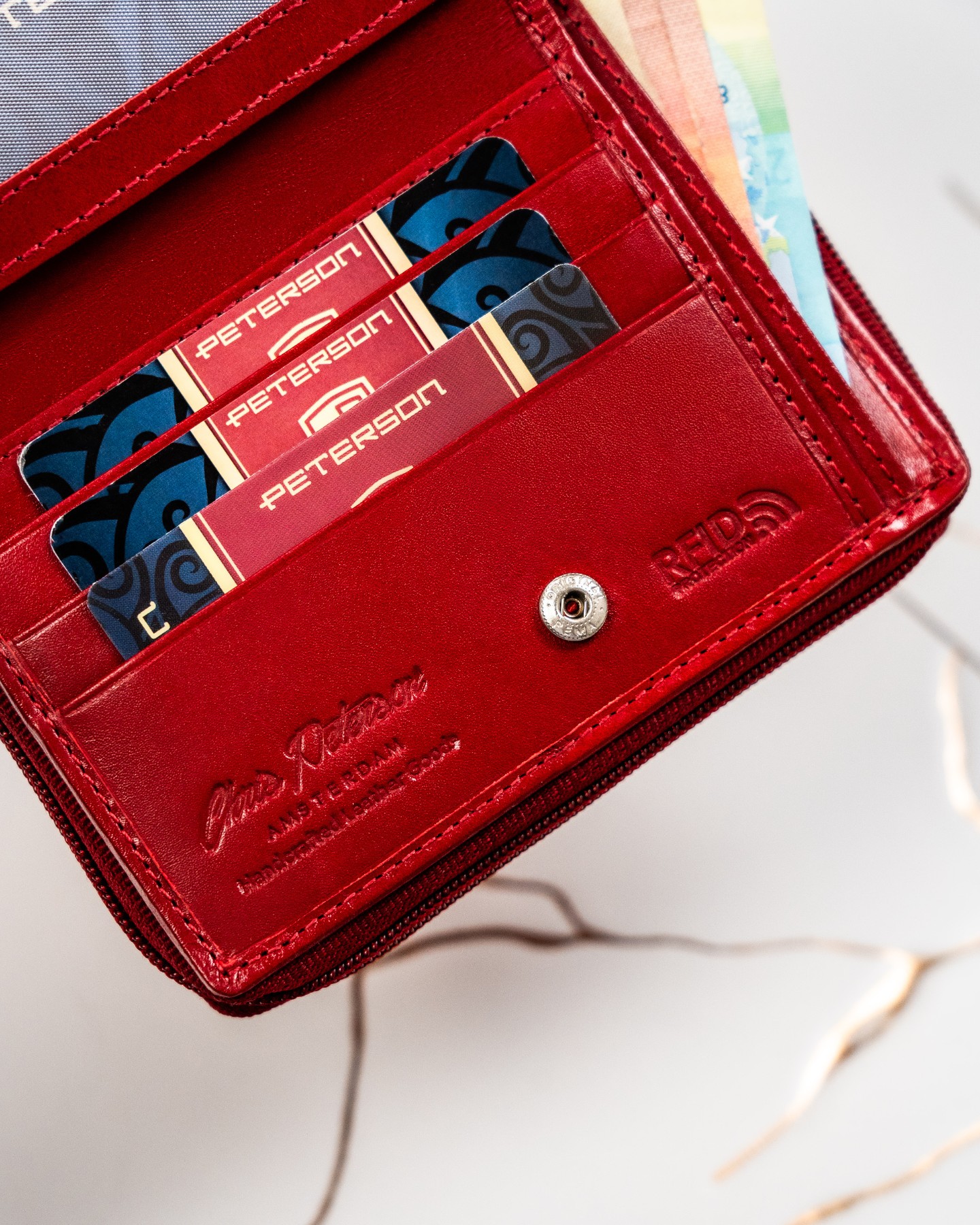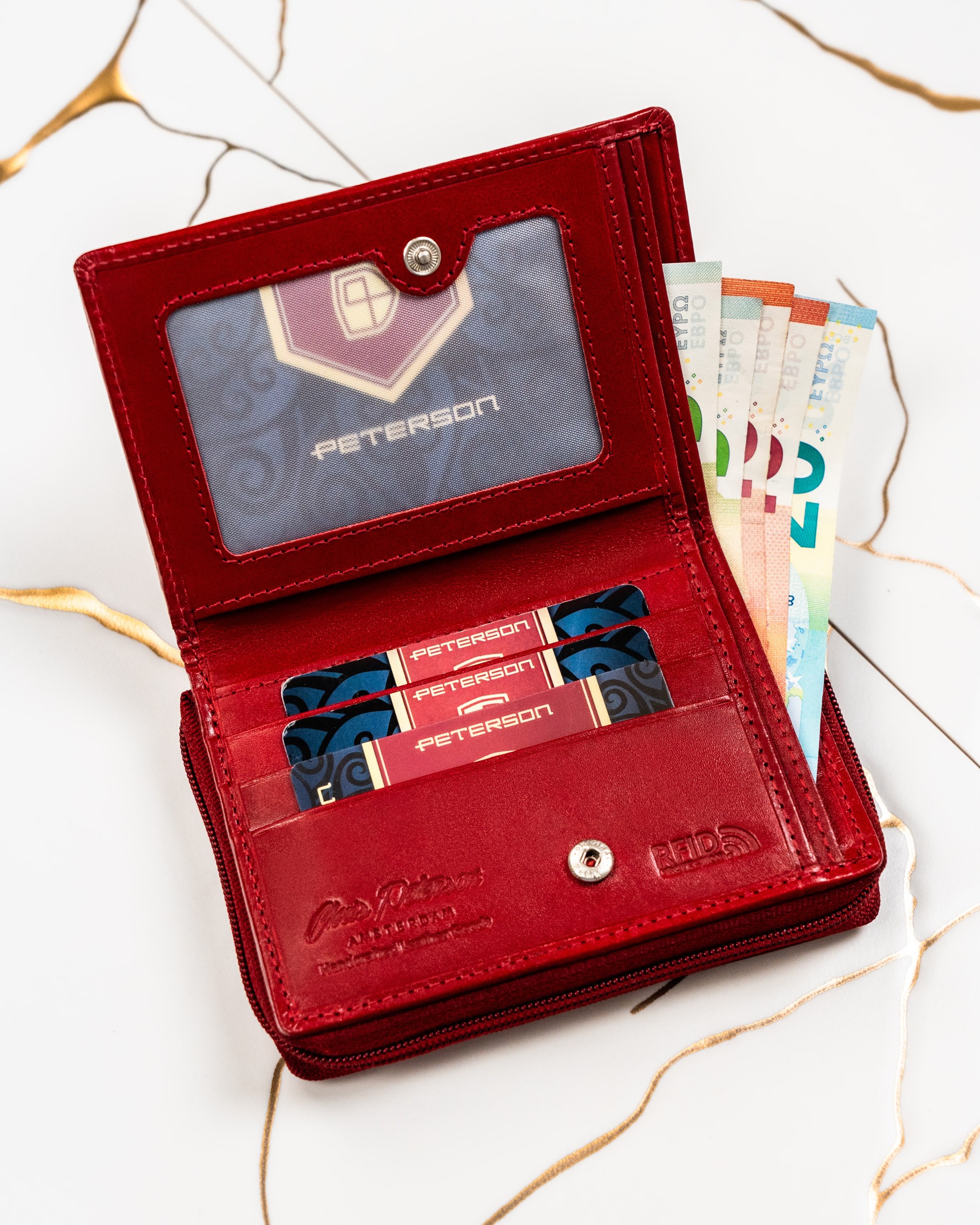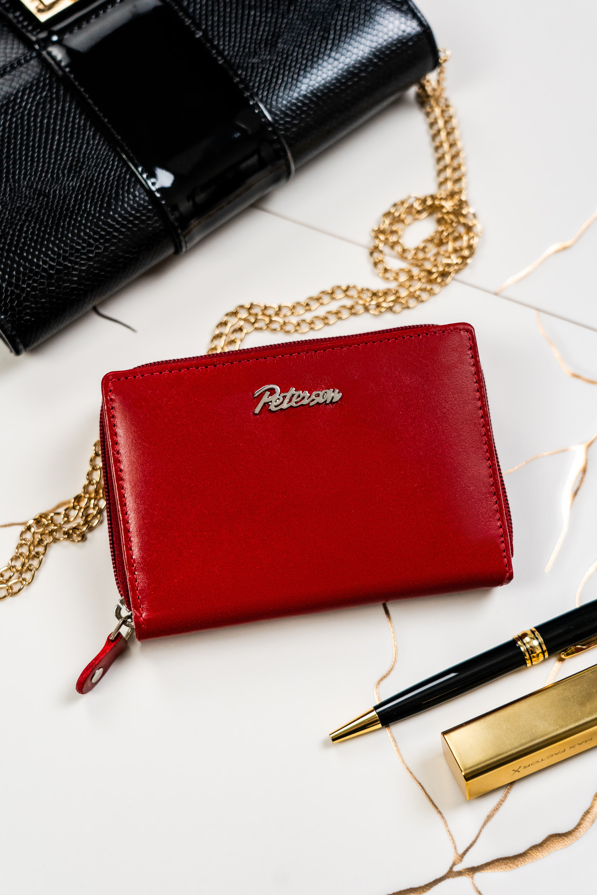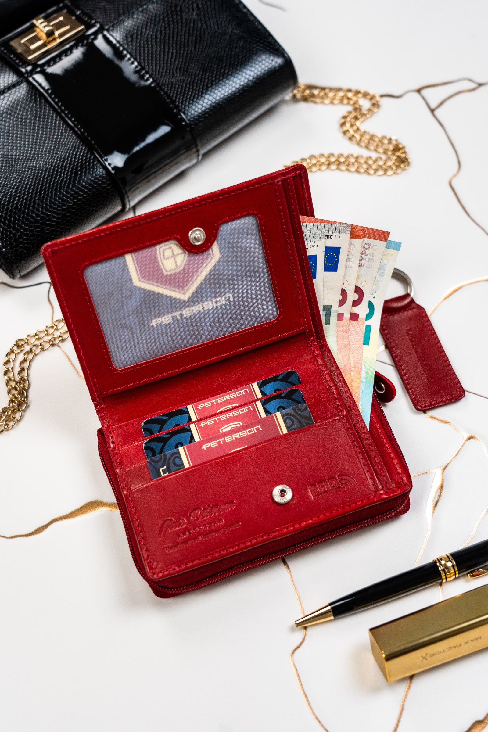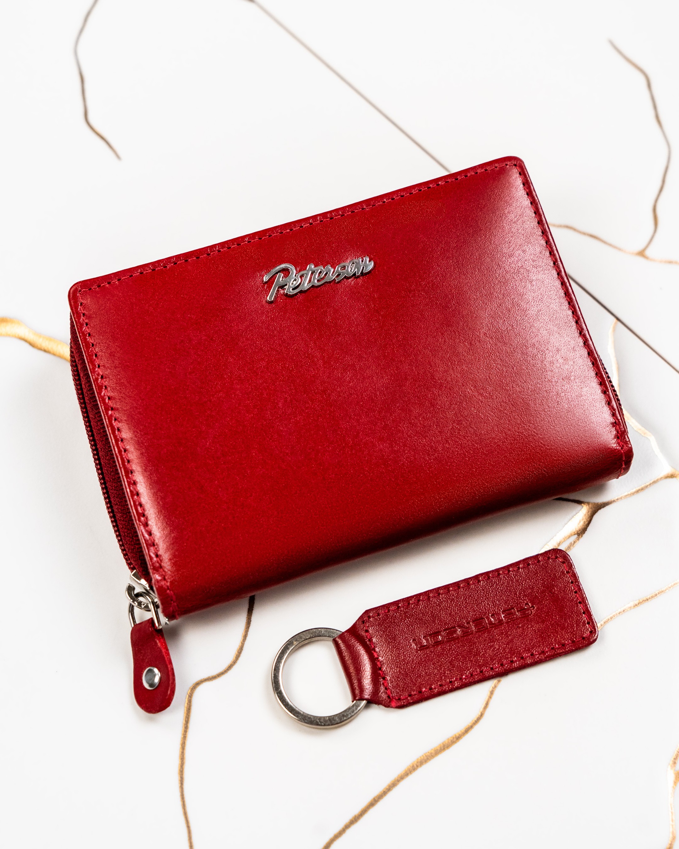 Stylowy zestaw damski PETERSON®: portfel i brelok ze skóry naturalnej